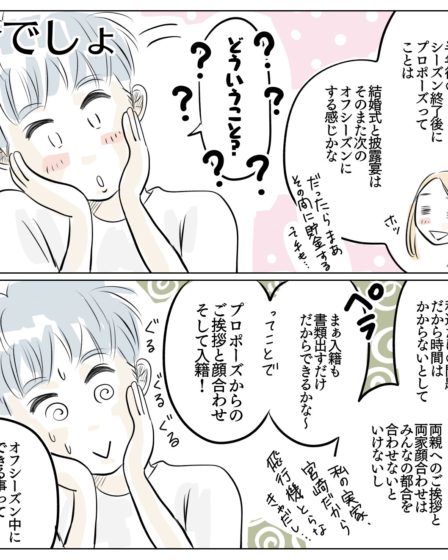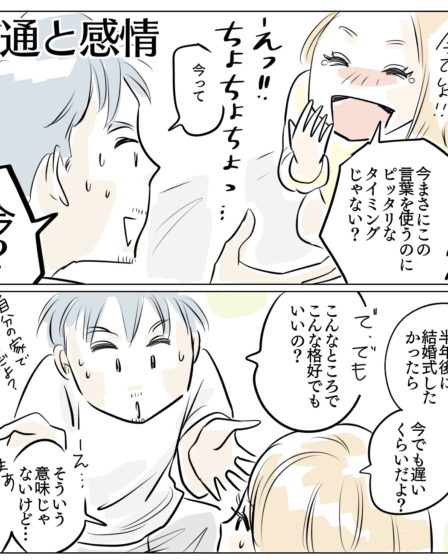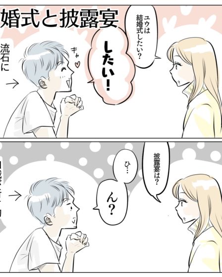 なんだか結婚雑誌の解説漫画みたいになっていますが、本当にこういう会話をしました( …